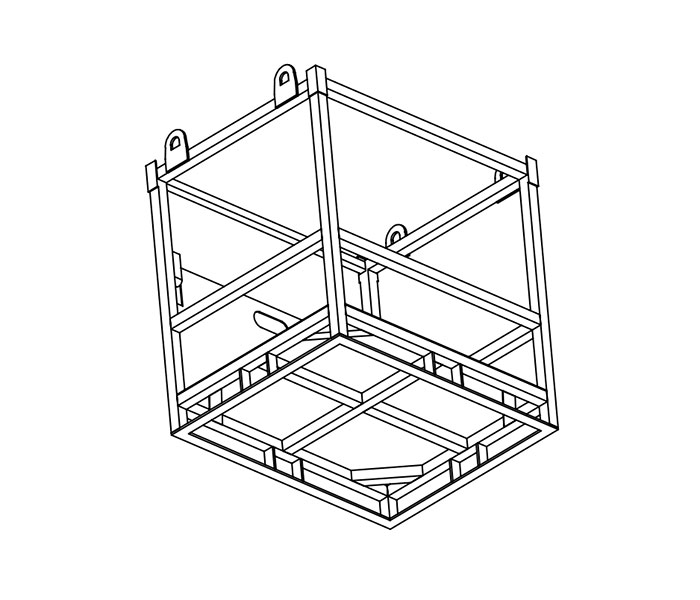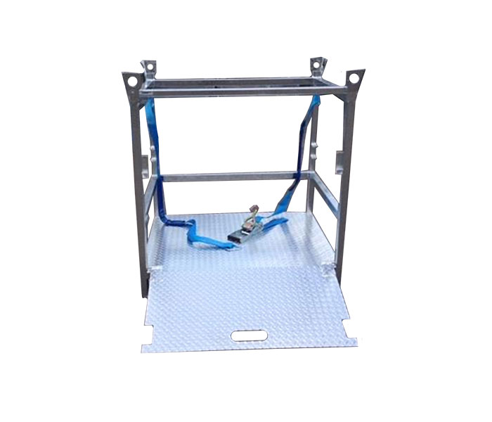 - Galvanized steel pallet designed for handling and transporting pressurized gas cylinders
