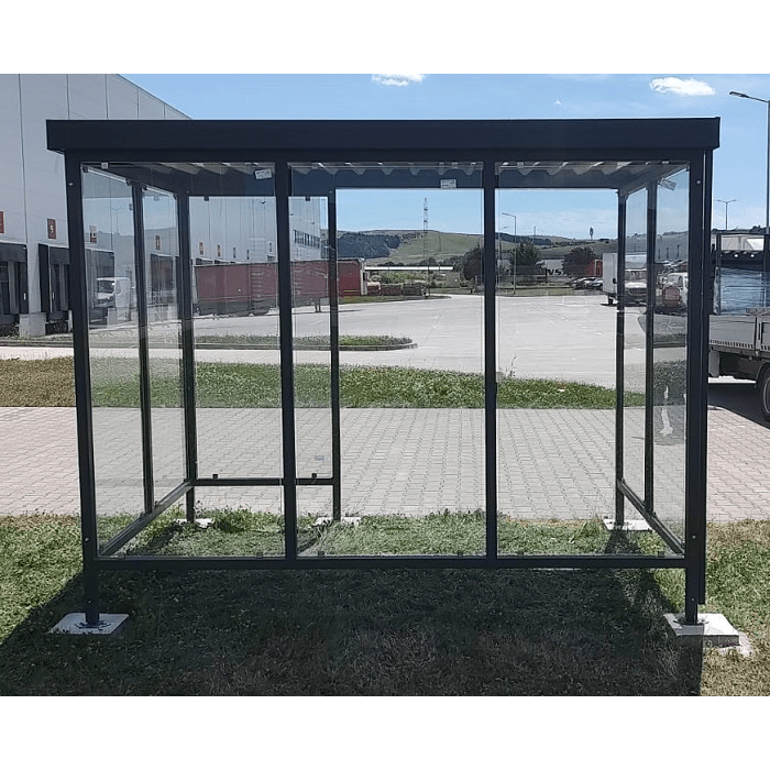 Designed for workplaces, commercial buildings, industrial facilities, and public areas, the AFE3 smoking shelter provides a durable and weather-resistant solution for designated smoking zones. The solid steel construction and tempered glass panels ensure safety, durability, and a modern architectural appearance suitable for UAE projects.