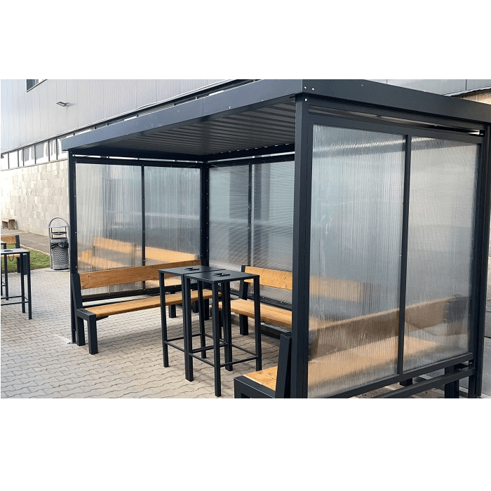 Designed to provide a practical and weather-resistant designated smoking area, the AFE11 smoking shelter is ideal for factories, warehouses, office buildings, commercial facilities, and public spaces throughout the UAE. Its durable steel structure and translucent panels ensure protection from sun and weather while maintaining ventilation and visibility.